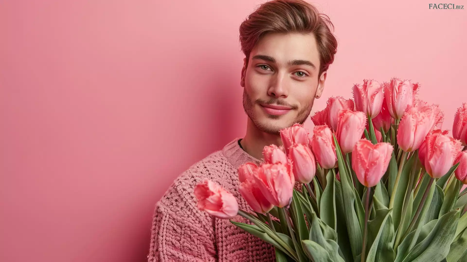 Różowe, Bukiet, Tulipany, Mężczyzna, Kwiaty - faceci.biz