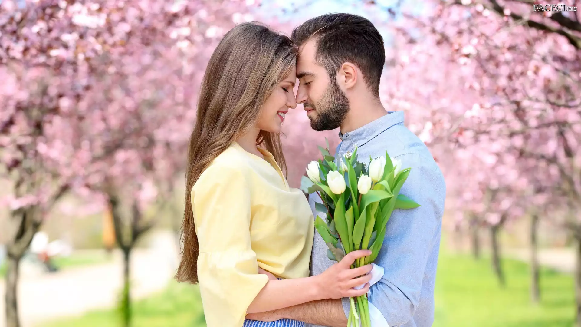 Wiosna, Kobieta, Zakochani, Tulipany, Para, Park, Mężczyzna - faceci.biz